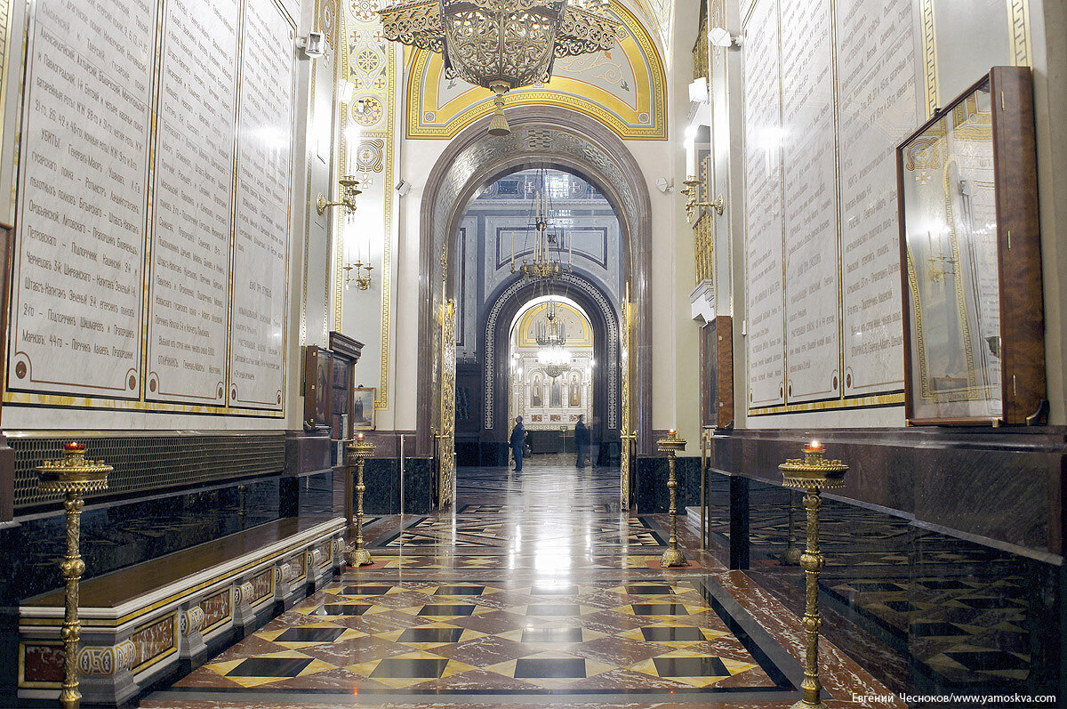 На стенах коридоров на мраморных досках в хронологическом порядке даны описания сражений войны 1812 года с местами и датами, названиями войсковых подразделений, именами убитых и раненых, полученными наградами. Здесь же воспроизведены Высочайшие манифесты о вступлении французской армии в пределы России, воззвание к народу русскому об ополчении, манифесты об изгнании Наполеона из пределов России, благодарности русскому народу и русскому дворянству, манифест о построении храма Христа Спасителя в Москве.